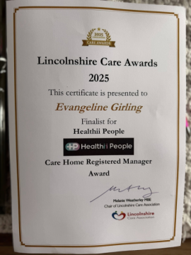 Last week, we attended the Lincolnshire Care Association 2025 Lincolnshire Care Awards, where Evangeline Girling, our manager at The Haven care home in Boston was shortlisted in the Registered Manager Category, sponsored by Healthii People.