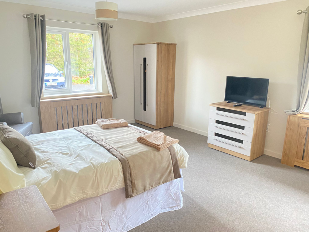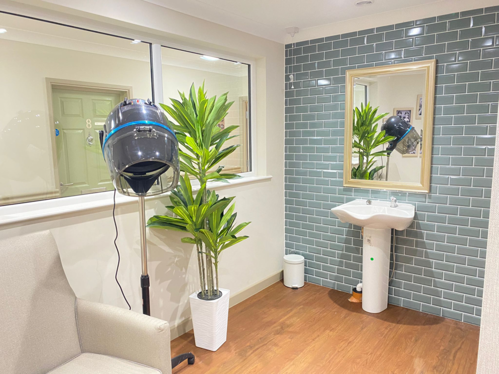 Our single-storey home has two inviting living rooms, a large dining room and adapted bathrooms. Outside is a sunny, courtyard garden and an large wooded garden area. The home has 30 bedrooms – all with en-suite facilities.